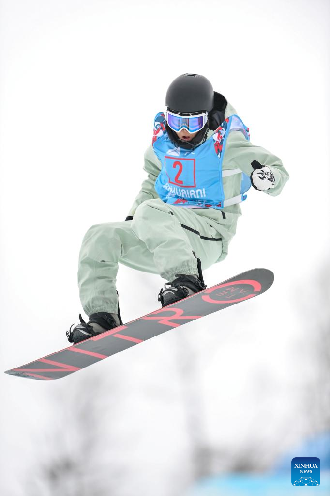 Wu Shaotong of China competes during the women's halfpipe final at the FIS Snowboard World Championships in Bakuriani, Georgia, March 3, 2023. (Photo by Tamuna Kulumbegashvili/Xinhua)