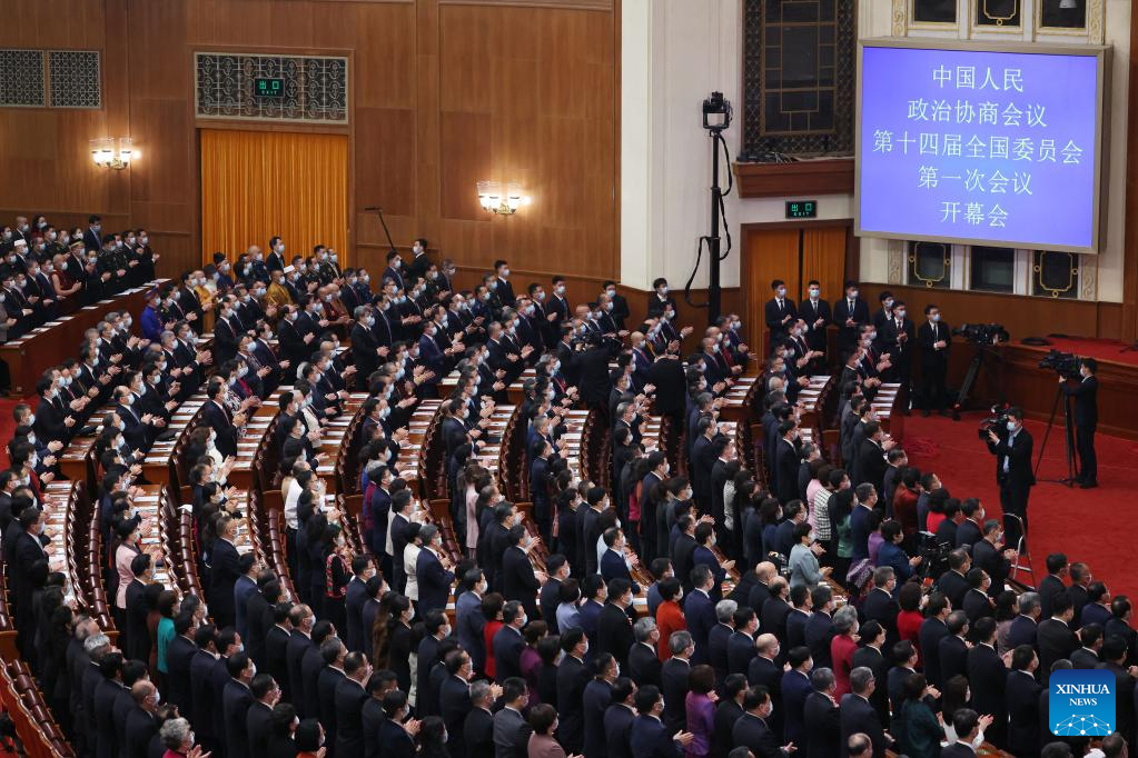 The opening meeting of the first session of the 14th National Committee of the Chinese People's Political Consultative Conference (CPPCC) is held at the Great Hall of the People in Beijing, capital of China, March 4, 2023. (Xinhua/Chen Jianli)