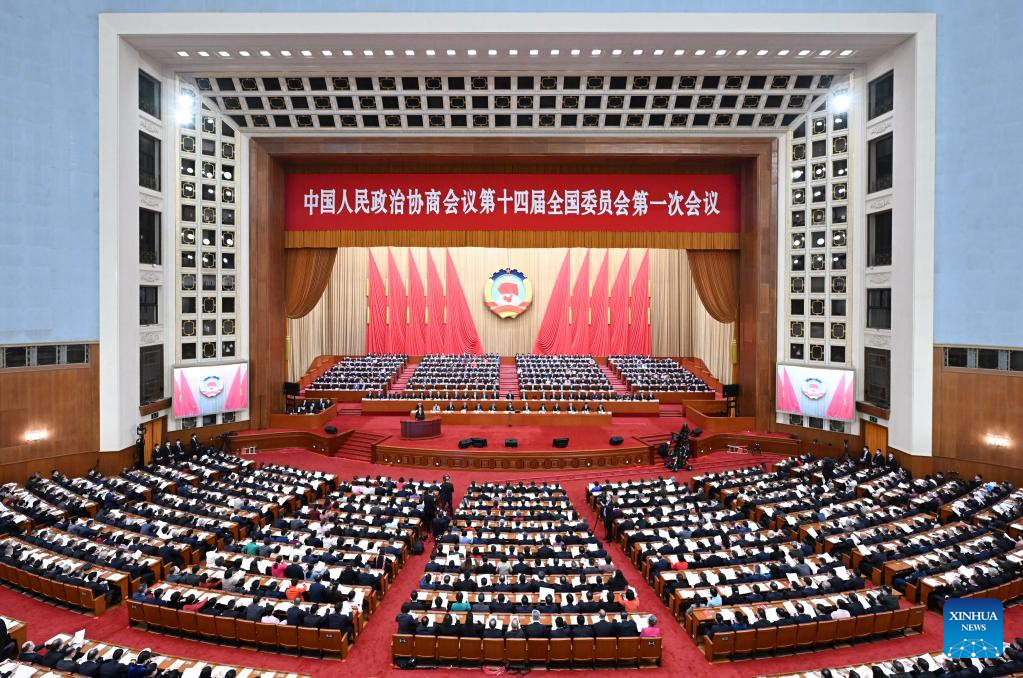 The opening meeting of the first session of the 14th National Committee of the Chinese People's Political Consultative Conference (CPPCC) is held at the Great Hall of the People in Beijing, capital of China, March 4, 2023. (Xinhua/Zhai Jianlan)