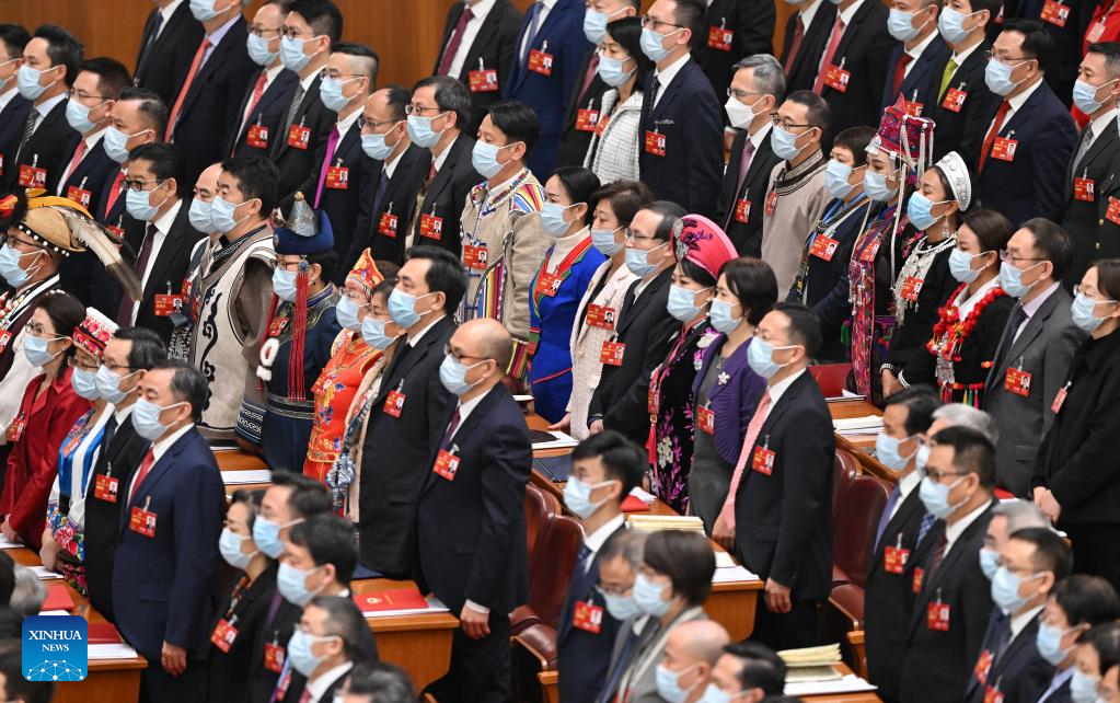 The opening meeting of the first session of the 14th National Committee of the Chinese People's Political Consultative Conference (CPPCC) is held at the Great Hall of the People in Beijing, capital of China, March 4, 2023. (Xinhua/Chen Yichen)