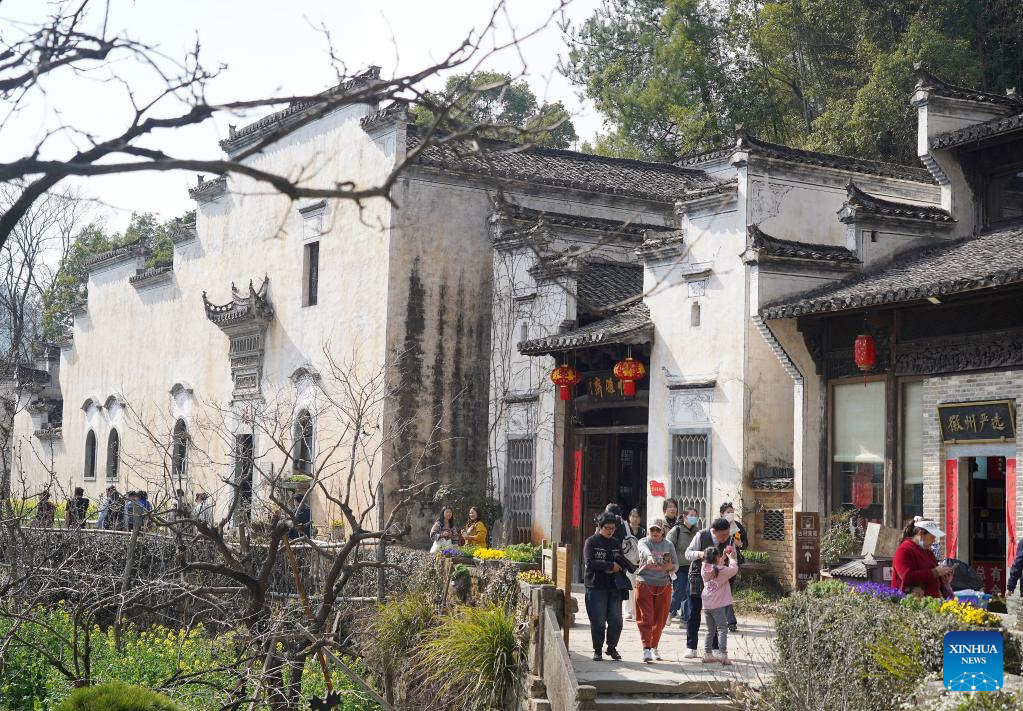 People visit Huangling scenic spot in Wuyuan County of east China's Jiangxi Province, March 2, 2023. Spring scenery in Wuyuan attracts lots of visitors with the rising of temperature. (Xinhua/Wan Xiang)