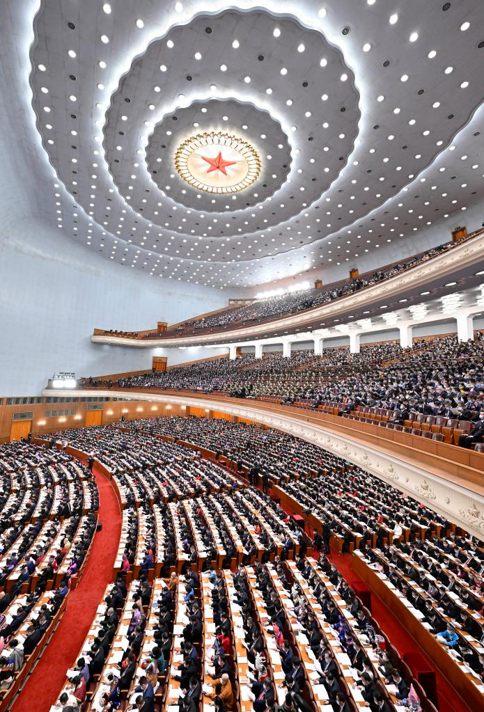 The opening meeting of the first session of the 14th National People's Congress (NPC) is held at the Great Hall of the People in Beijing, capital of China, March 5, 2023. (Xinhua/Huang Jingwen)