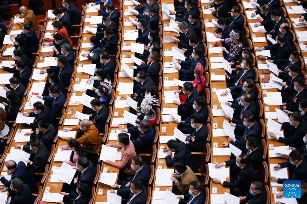 Deputies to the 14th National People's Congress (NPC) attend the second plenary meeting of the first session of the 14th NPC at the Great Hall of the People in Beijing, capital of China, March 7, 2023. (Xinhua/Liu Jinhai)
