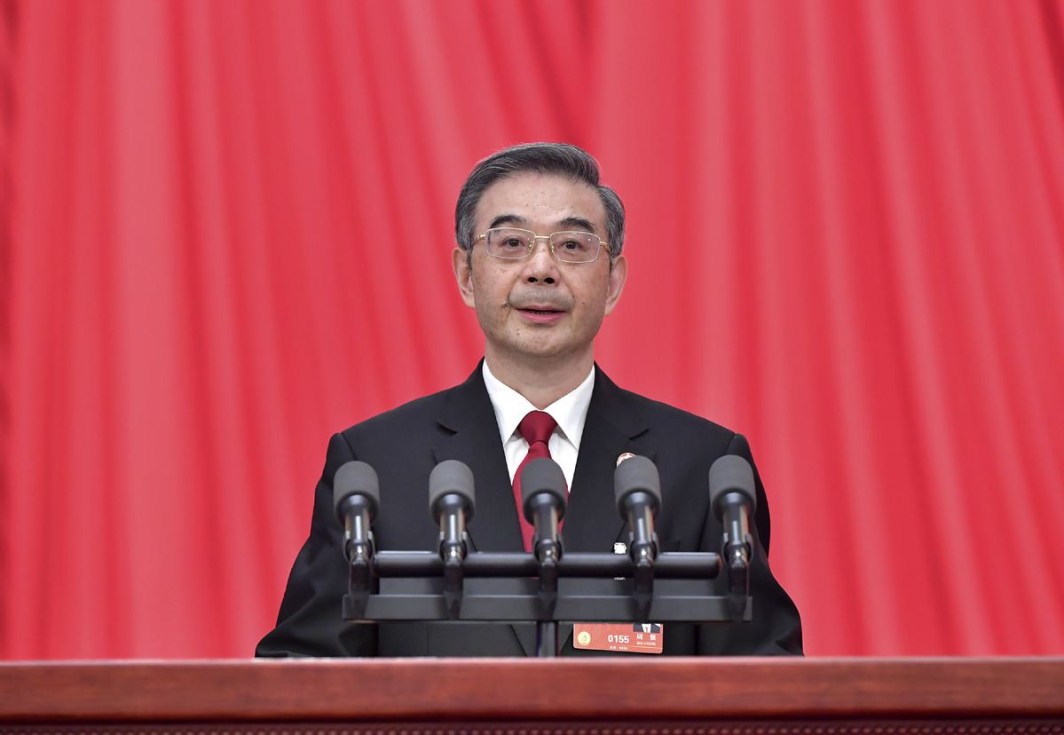 Zhou Qiang, president of the Supreme People's Court (SPC), delivers a work report of the SPC at the second plenary meeting of the first session of the 14th National People's Congress (NPC) at the Great Hall of the People in Beijing, capital of China, March 7, 2023. [Photo/Xinhua]