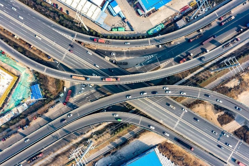Photo taken on Feb. 10, 2023 shows an interchange in the Qingdao Area of China (Shandong) Pilot Free Trade Zone in east China's Shandong province. (People's Daily Online/Han Jiajun)