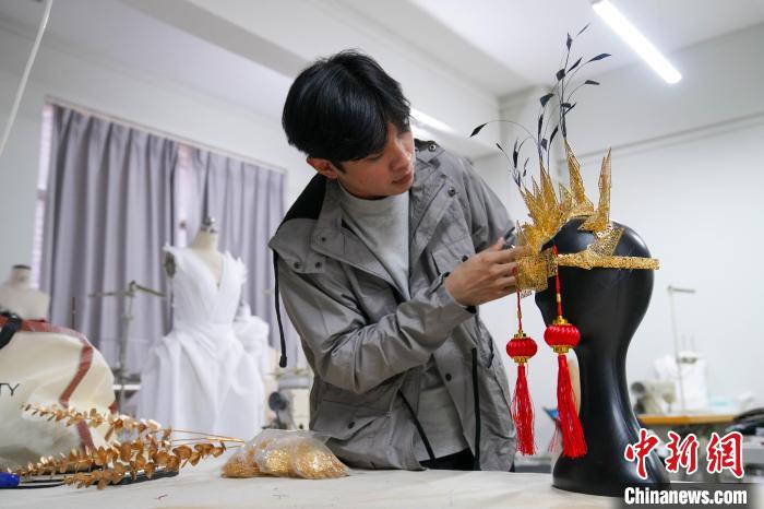 Pei Youshu, a Chinese Indonesian Gen Z stylist who studies in China, displays one of his unfinished works. (Photo/Wang Yizhao)