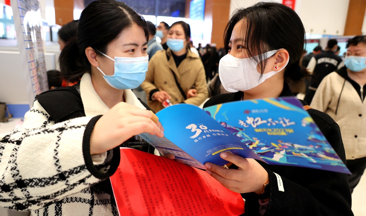 A job fair for female job seekers was held in Lianyungang, Jiangsu on March 8, 2023. [Photo by Geng Yuhe/For chinadaily.com.cn]