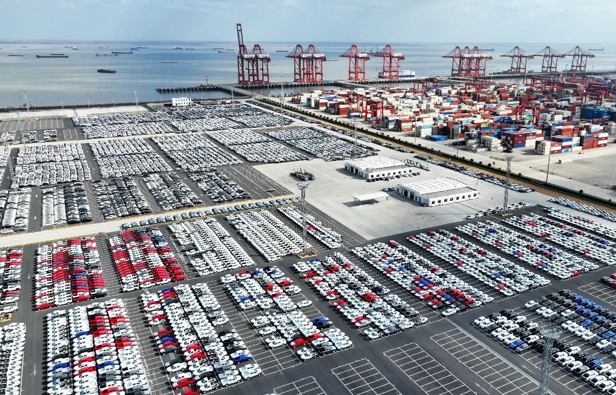 Vehicles to be exported are parked in a storage yard of Taicang port, east China's Jiangsu province. (People's Daily Online/Ji Haixin)