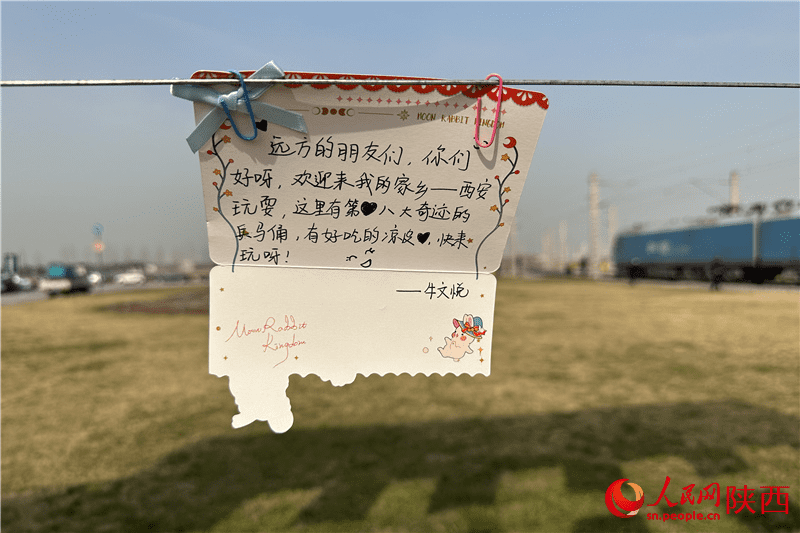Photo taken on Mar. 7, 2023 shows a card written by a child in Xi’an, northwest China's Shaanxi Province, which invites Kazakhstani children to visit the city. (Photo/Li Zhiqiang)