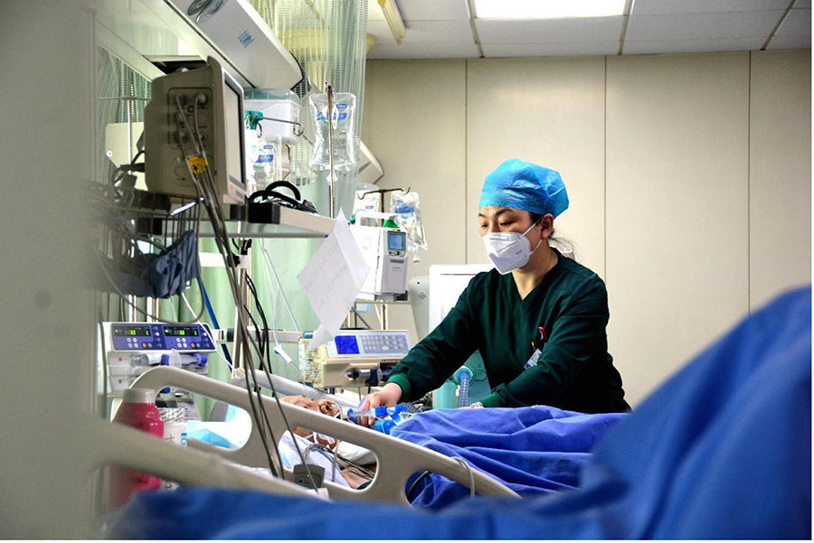 A medical worker treats a patient at a hospital in Qinhuangdao, north China's Hebei province, March 8, 2023. (Photo by Yang Qi/People's Daily Online)