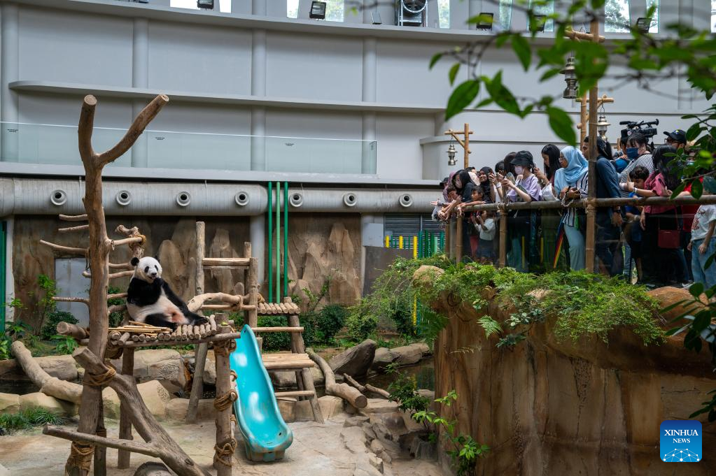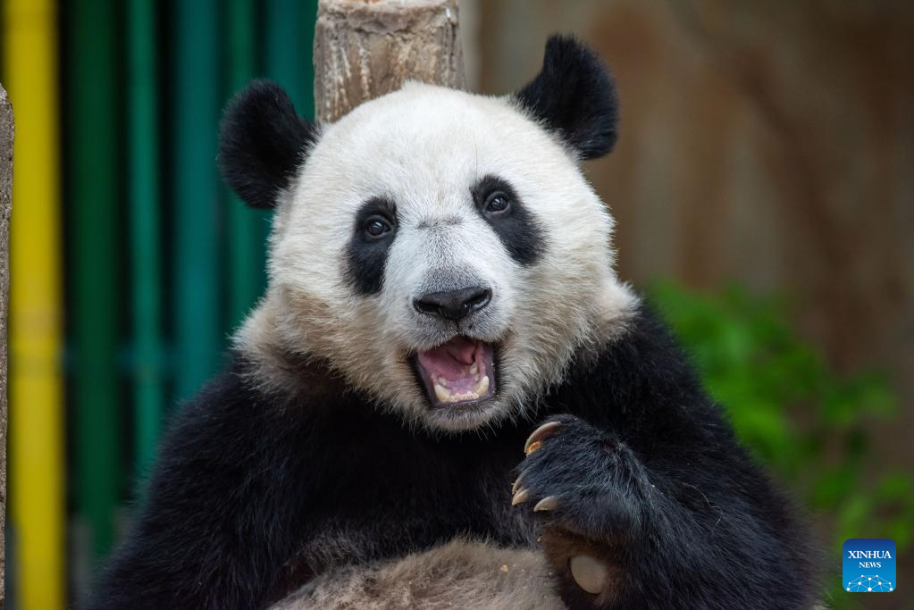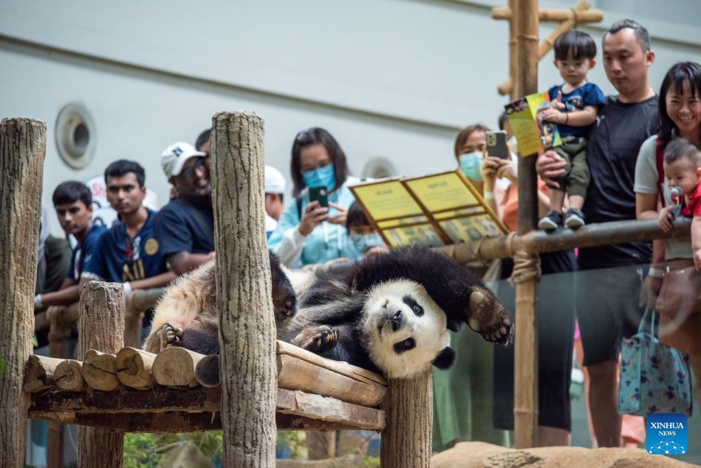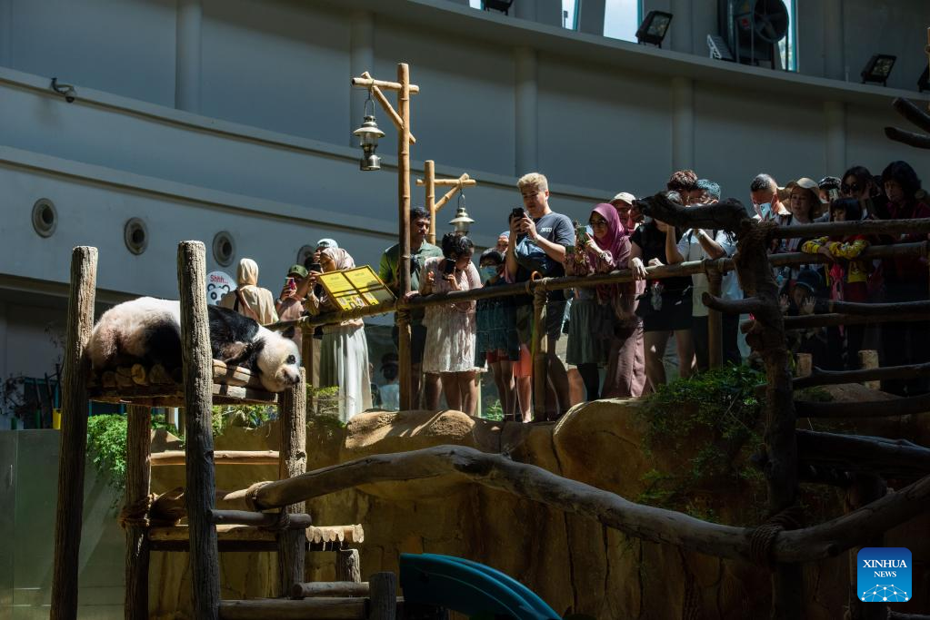 This photo taken on March 11, 2023 shows giant panda Sheng Yi at Zoo Negara near Kuala Lumpur, Malaysia. The Giant Panda Conservation Center in Zoo Negara near Kuala Lumpur is currently home to a family of four, including the giant panda father Xing Xing, mother Liang Liang as well as their daughters Yi Yi and Sheng Yi. (Photo by Chong Voon Chung/Xinhua)