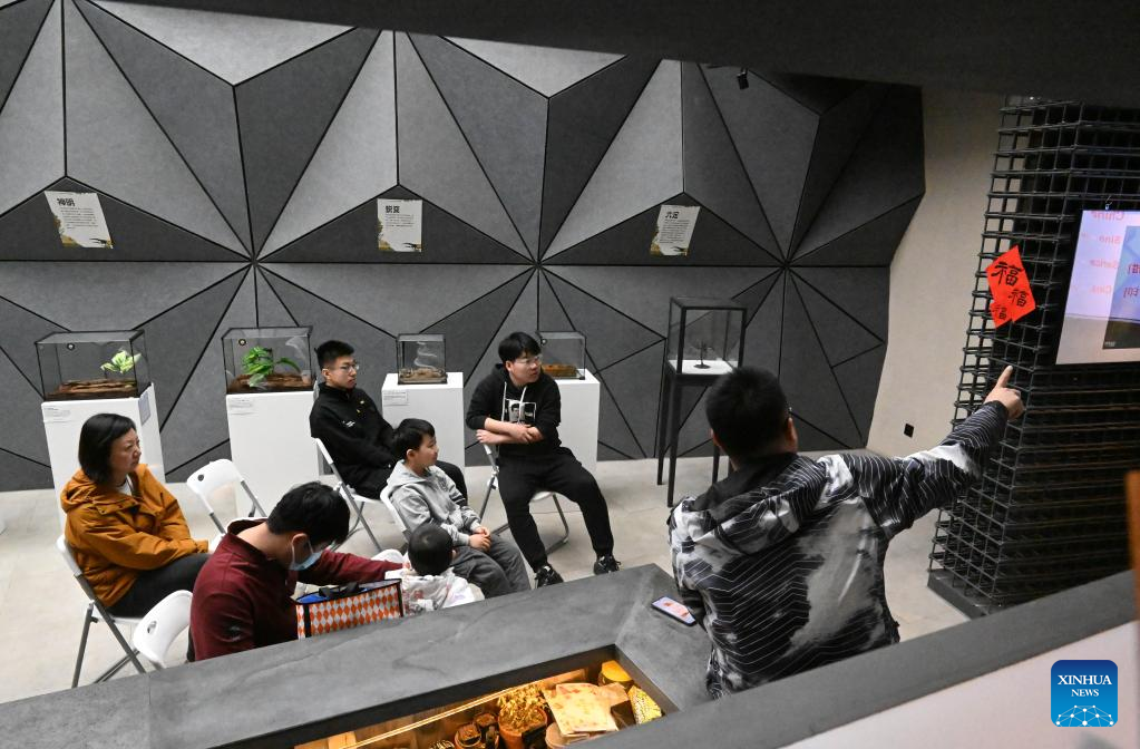 People learn about insects at an insect museum of the "eden Chunshanli" life demonstration area in Jizhou District, north China's Tianjin, March 11, 2023. (Xinhua/Zhao Zishuo)