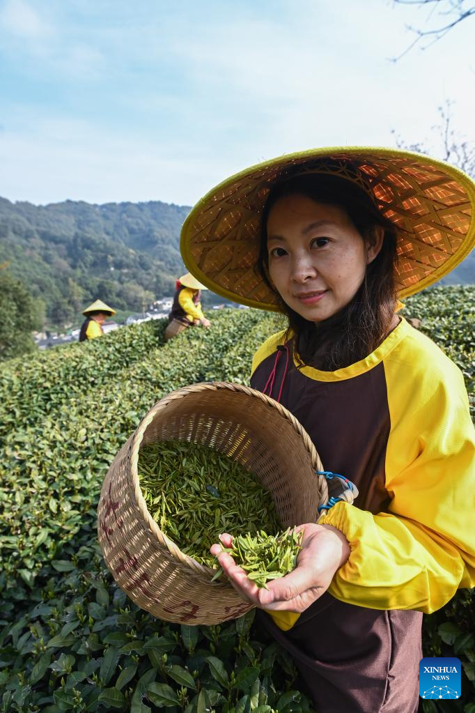 Farmers in Hangzhou start harvesting Longjing tea leaves ahead of Qingming Festival