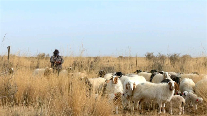 Photo shows a flock of ewes and newborn lambs in a pasture in the Gobi Desert in Mangya city, Haixi Mongolian and Tibetan Autonomous Prefecture, northwest China's Qinghai Province. (Photo/Narenhua)