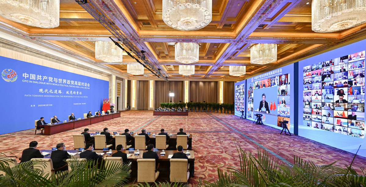 Xi Jinping, general secretary of the Communist Party of China (CPC) Central Committee and Chinese president, attends the CPC in Dialogue with World Political Parties High-Level Meeting via video link and delivers a keynote address in Beijing, capital of China, March 15, 2023. [Photo/Xinhua]