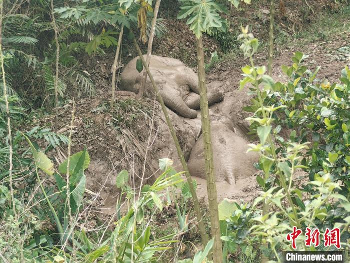 Local police at the border police station of Mengman township, Xishuangbanna Dai Autonomous Prefecture, southwest China's Yunnan Province rescued a trapped wild Asian elephant on March 13, 2023.