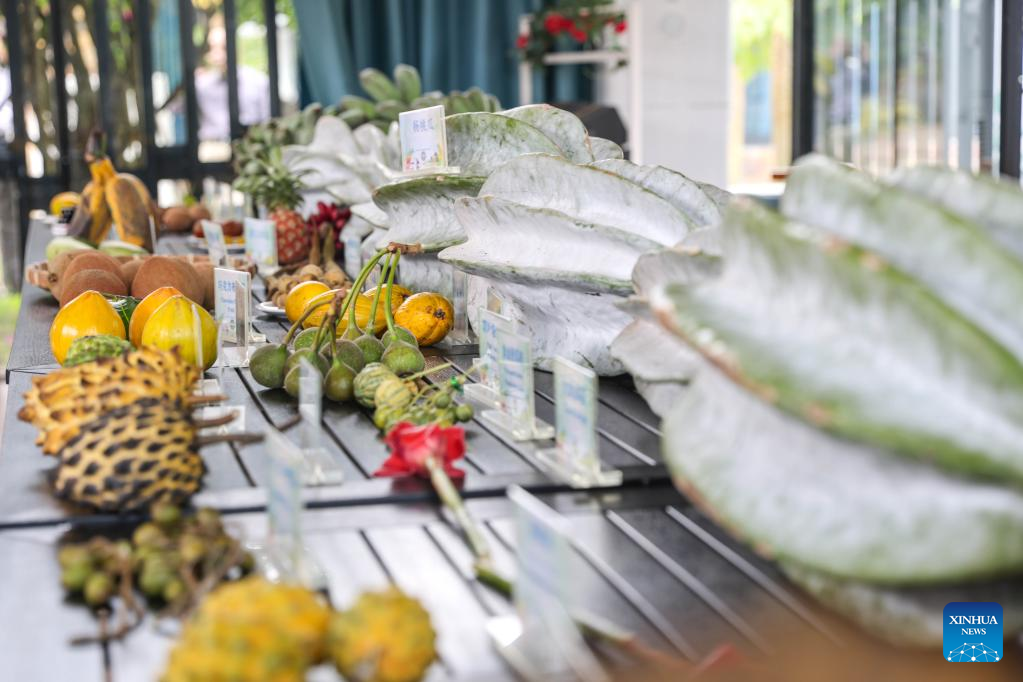 Tropical fruits are on display at a scenic spot featuring tropical fruits in Qionghai, south China's Hainan Province, March 15, 2023. As a key project of a pilot zone for international agricultural cooperation in Hainan Province, the scenic spot has introduced more than 500 kinds of tropical fruits from all over the world, which promotes the integrated development of agriculture and tourism. (Xinhua/Zhang Liyun)