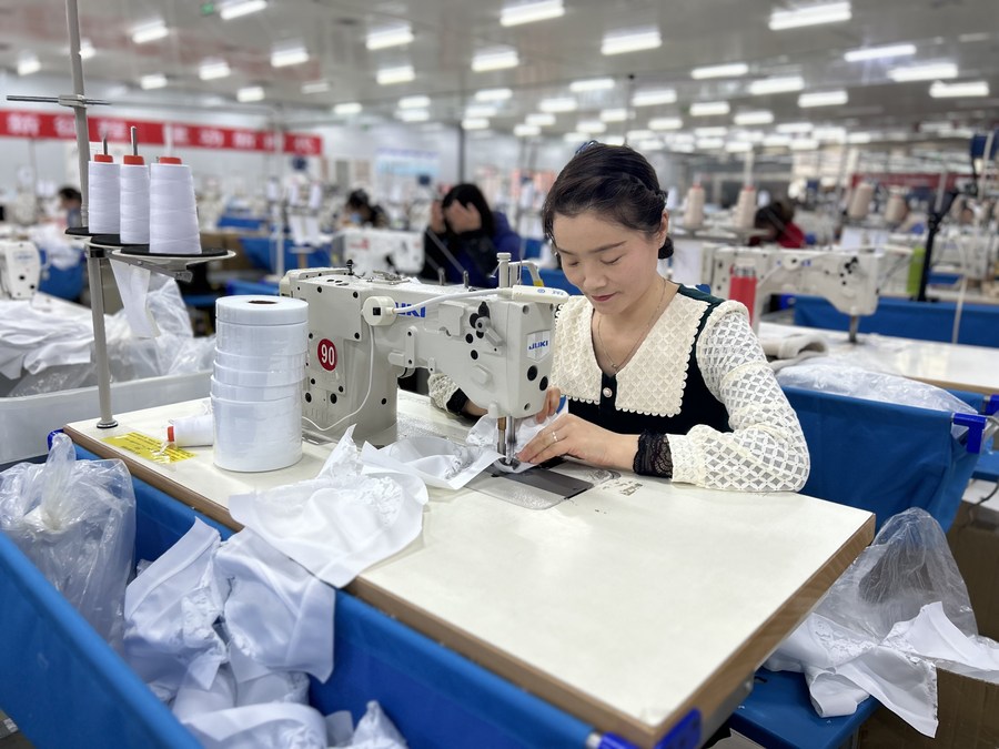 YINCHUAN, March 19 (Xinhua) -- Amid the humming production lines and whirring sewing machines, dozens of women workers are busy stitching together clothes in a factory, making lingerie products while realizing their dream of building a better life.