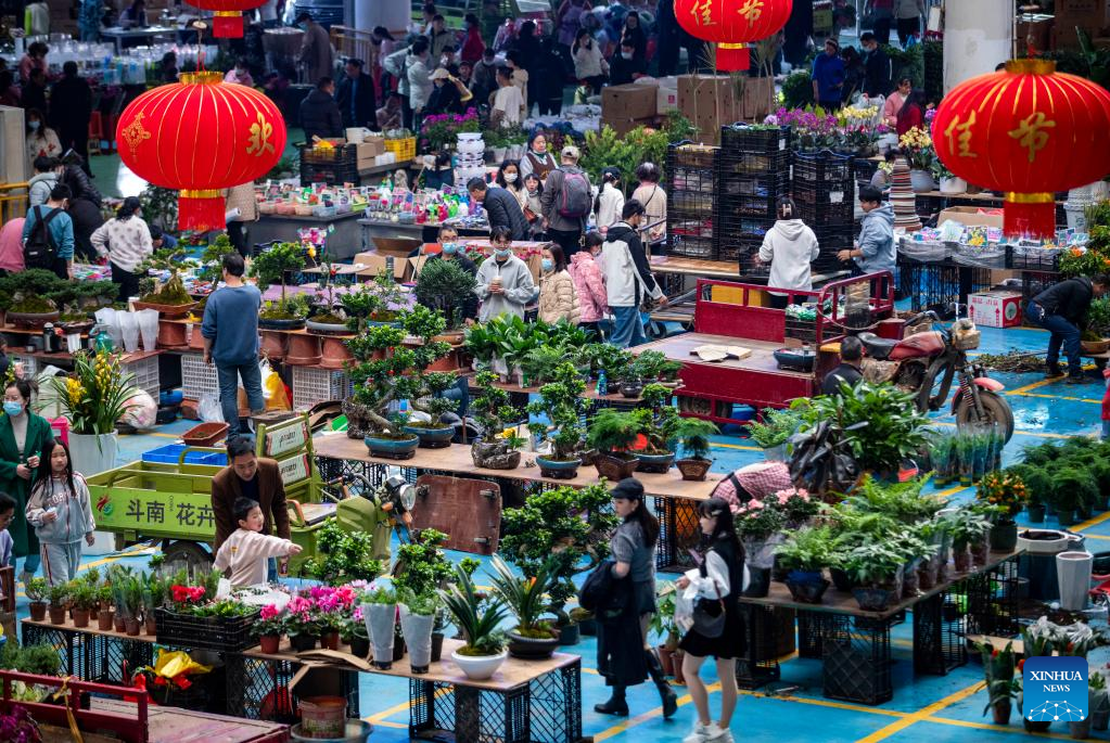 People visit the Dounan Flower Market in Kunming, southwest China's Yunnan Province, Jan. 31, 2023. (Xinhua/Chen Xinbo)