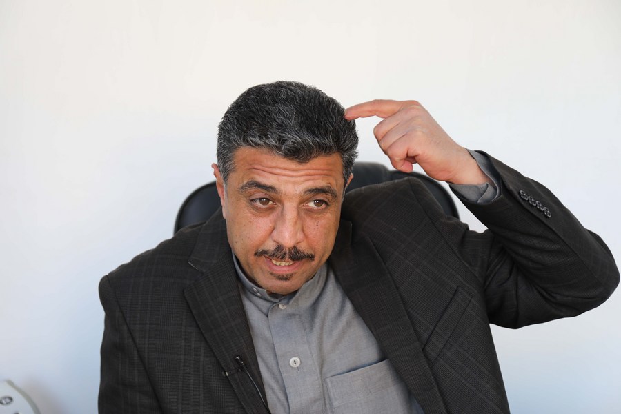A photo taken on Feb. 9, 2023 shows Ghassan Eyada Menshid, an Iraqi journalist who was arrested by the American soldiers on July 10, 2005 and was subjected to physical and mental torture in U.S.-run prisons. (Xinhua/Khalil Dawood)