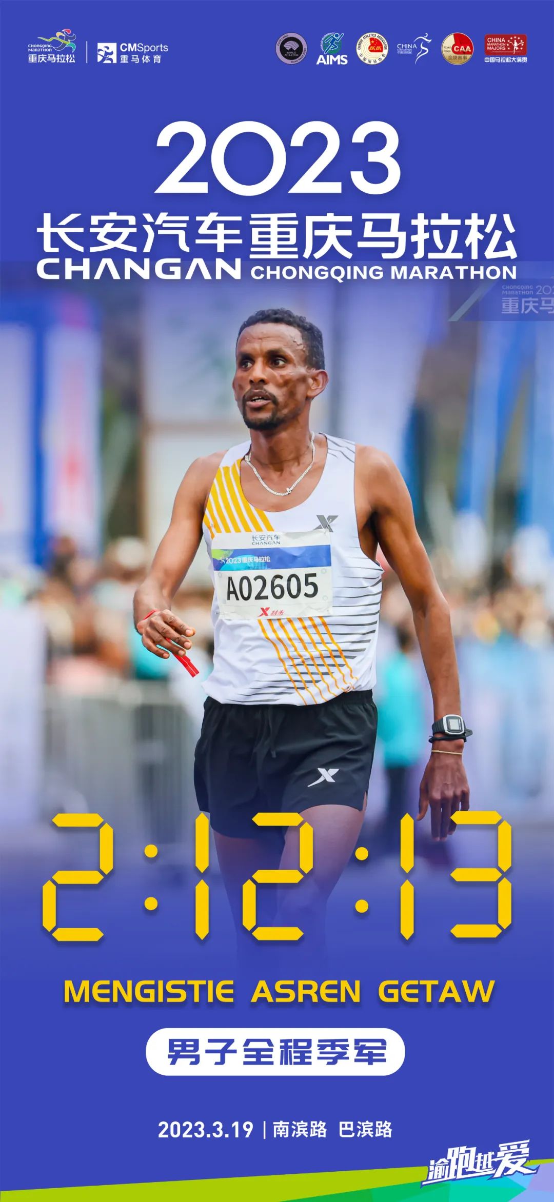 Mengistie Asren Getaw from Ethiopia finishes third in the men's group. (Photo/Chongqing Marathon)