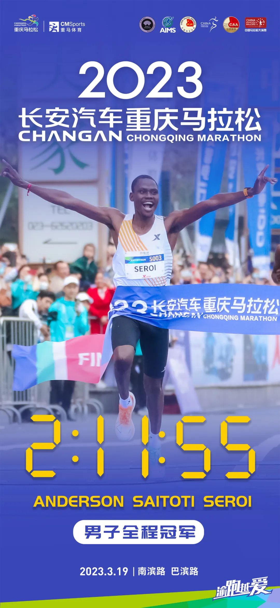Anderson Saitoti Seroi from Kenya wins first place in the men's group. (Photo/Chongqing Marathon)