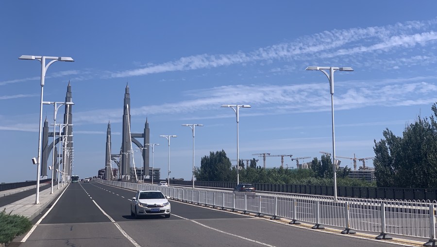 Photo taken with a mobile phone shows a view of the Nanhuan bridge in Changping District of Beijing, capital of China, Aug. 24, 2020. (Xinhua/Cai Yang)