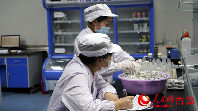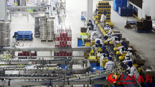 Workers process dairy products at a factory of Qingzang Pasture Dairy Co., Ltd. in Xining, capital city of northwest China's Qinghai Province. (People's Daily Online/Yang Zeqiu)