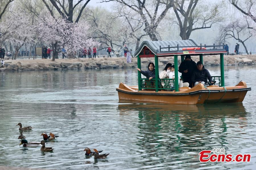 Tourists take a cruise boat on Kunming Lake at the Summer Palace in Beijing, March 20, 2023. (Photo: China News Service/Yi Haifei)