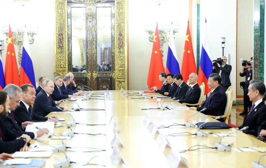 Noting China-Russia cooperation enjoys significant potential and space and is strategic, reliable and stable, Xi said that the two sides need to strengthen overall coordination, boost trade in traditional areas, such as energy, resources, and electromechanical products, continuously enhance the resilience of industrial and supply chains, expand cooperation in such areas as information technology, the digital economy, agriculture and trade in services. They should step up cooperation in areas of innovation and facilitate cross-border logistics and transportation, he added.