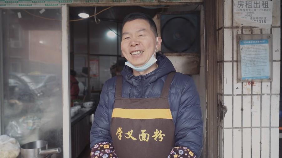 Chen Xueyi, 48, has run his rice noodle restaurant for 27 years. (People's Daily Online/Yuan Meng)