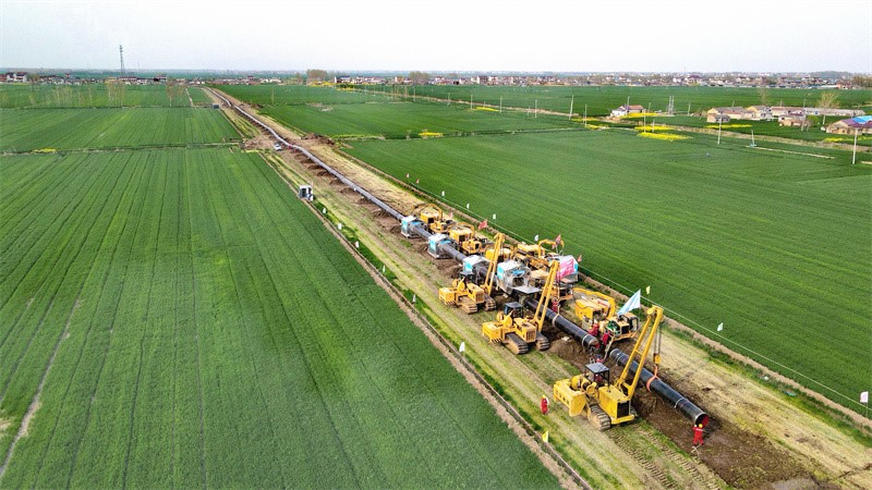 A section between Tai'an, east China's Shandong province and Taixing, east China's Jiangsu province of the China-Russia east-route natural gas pipeline project is under construction. (Photo from the website of PipeChina)