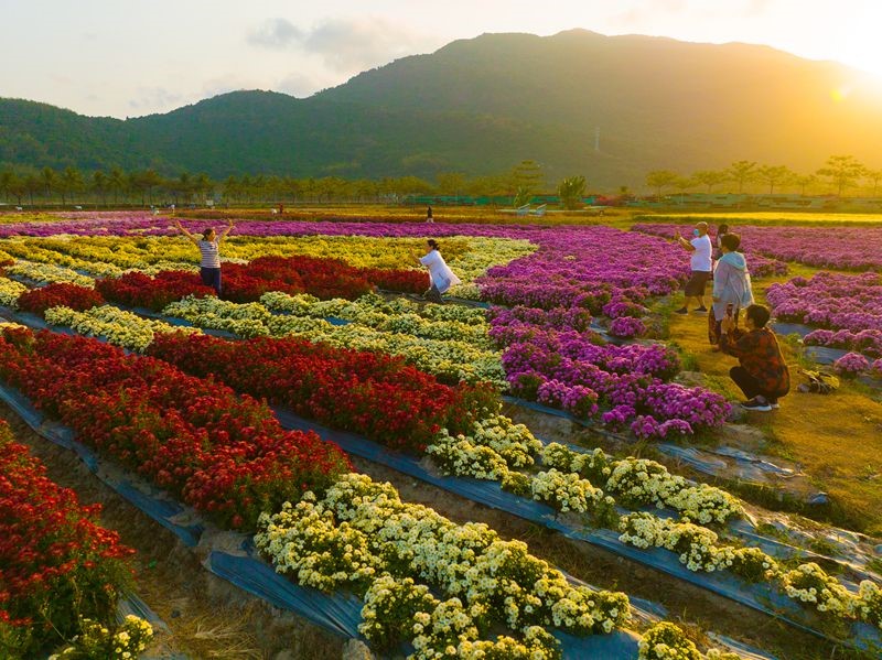 Photo shows tourists in a sea of chrysanthemums at the Sanya Paddy Field National Park in Sanya, south China’s Hainan Province. (Photo courtesy of the chrysanthemum research team from the Sanya Institute of Nanjing Agricultural University)