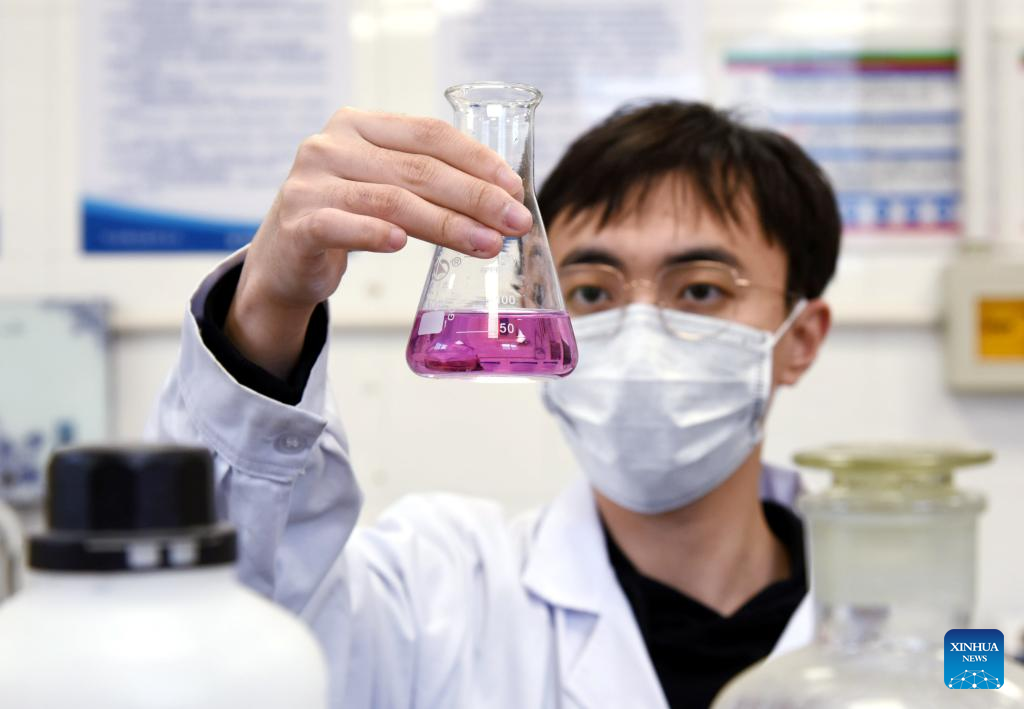 A technician tests the quality of desalinated seawater at a seawater desalination plant in Qingdao, east China's Shandong Province, March 20, 2023. (Xinhua/Li Ziheng)