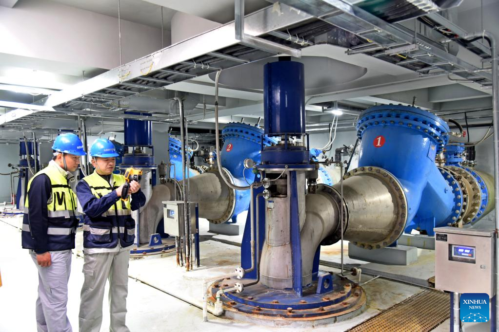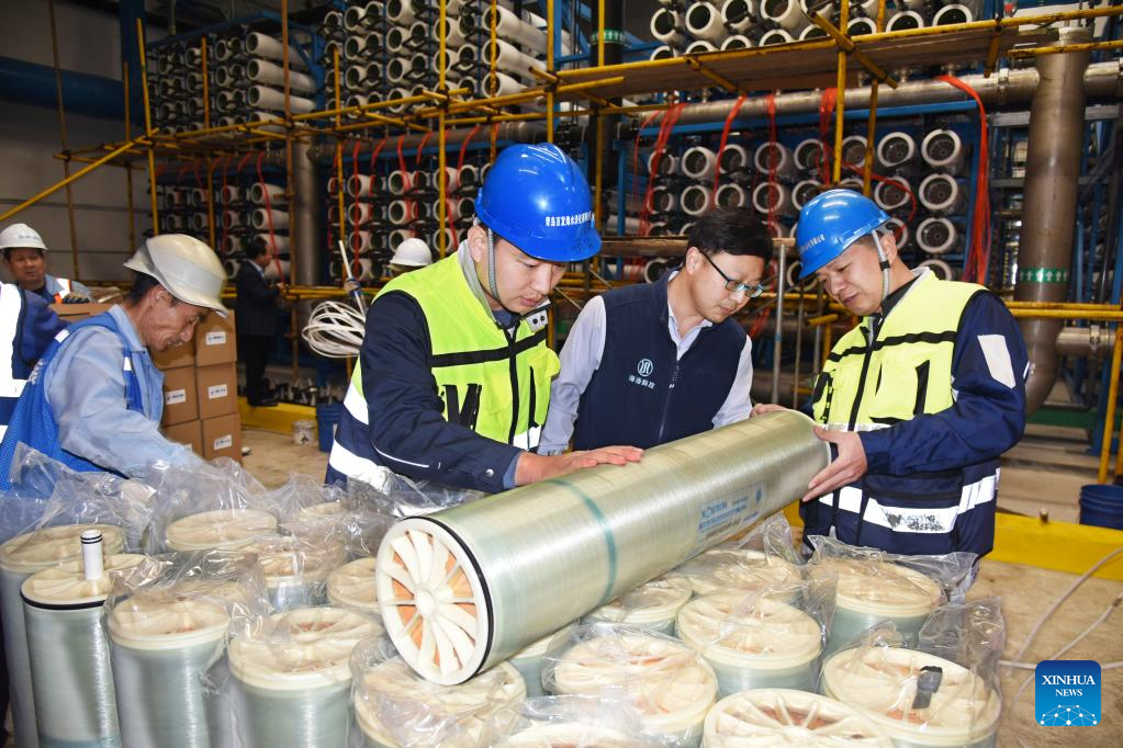 Technicians check equipment at a seawater desalination plant in Qingdao, east China's Shandong Province, March 20, 2023. (Xinhua/Li Ziheng)