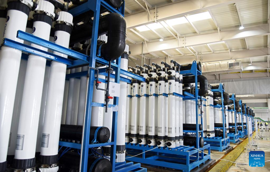 This photo taken on March 20, 2023 shows an interior view of a seawater desalination plant in Qingdao, east China's Shandong Province. (Xinhua/Li Ziheng)