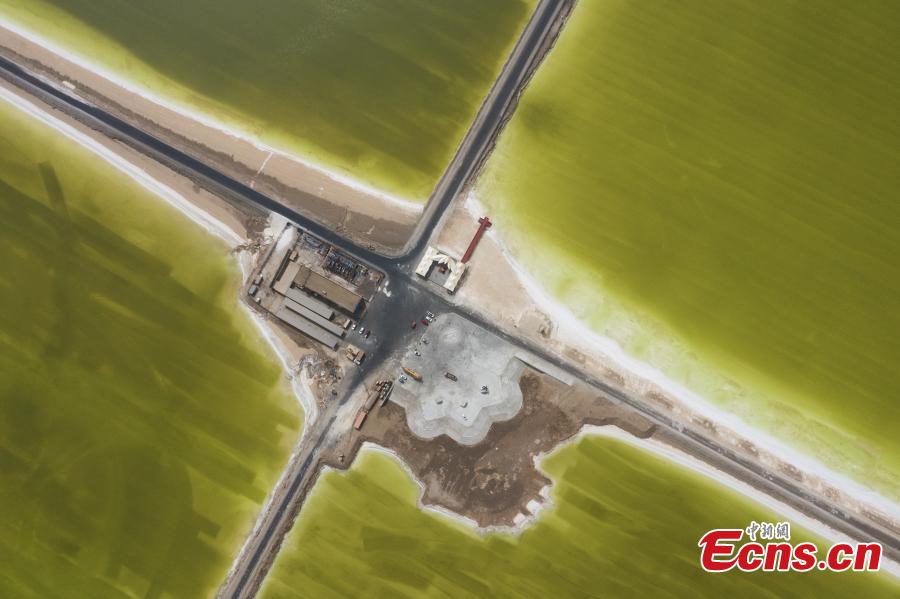 Aerial view of emerald-like Qarhan Salt Lake in Haixi Mongolian and Tibetan Autonomous Prefecture, northwest China's Qinghai Province, March 21, 2023. (Photo: China News Service/Ma Mingyan)