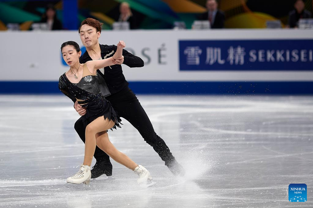 Zhang Siyang (L)/Yang Yongchao of China perform during the pairs short program at the ISU World Figure Skating Championships held at Saitama Super Area in Saitama, Japan, March 22, 2023. (Xinhua/Zhang Xiaoyu)