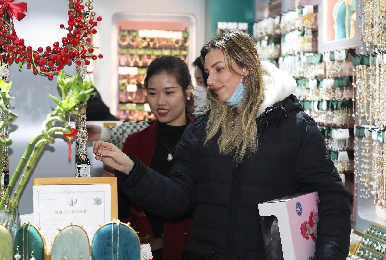 A Russian merchant buys products in Yiwu, east China's Zhejiang province, Feb. 2, 2023. (People's Daily Online/Gong Xianming)