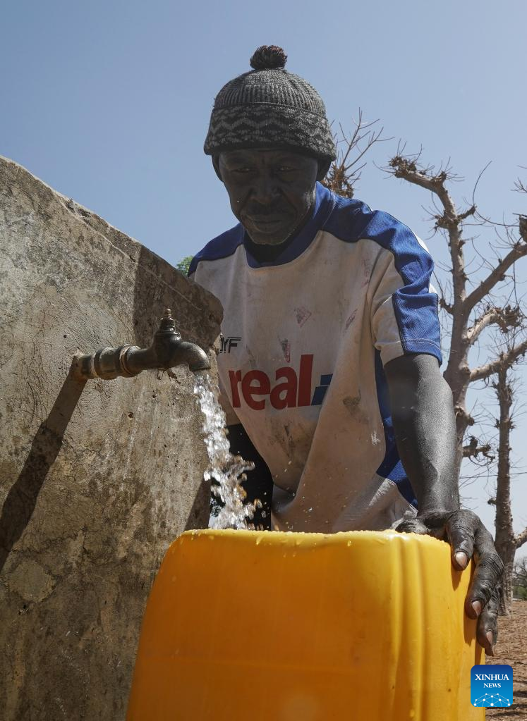 A villager collects water in Tenefoul Toucouleur Village, Diourbel, Senegal, March 20, 2023. (Xinhua/Han Xu)