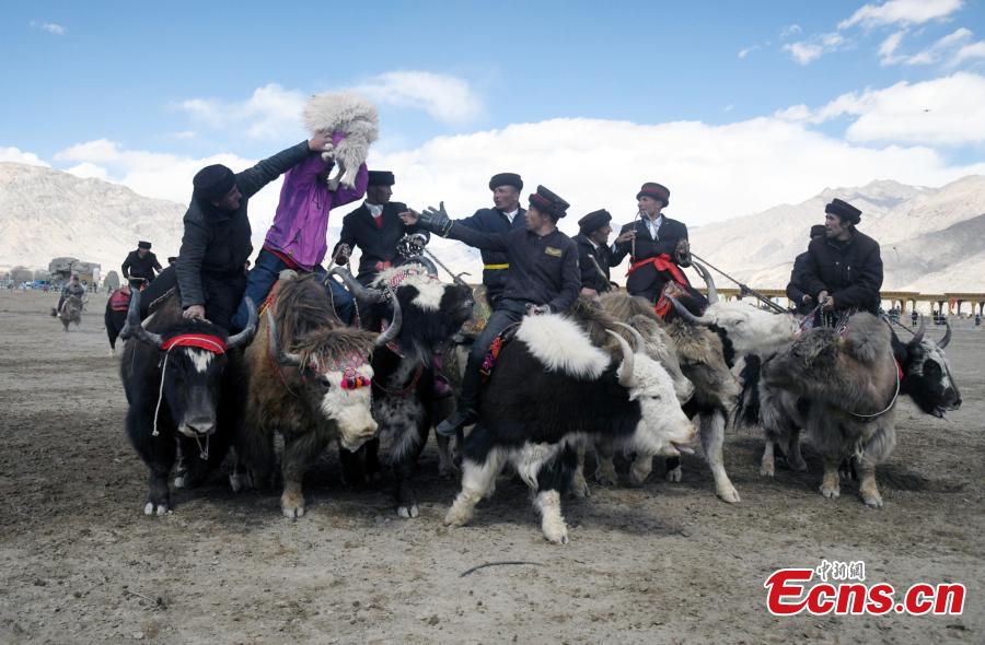 Tajik herdsmen ride yaks to catch a goat to greet the start of spring on the Pamir Plateau in Taxkorgan Tajik Autonomous County in Kashgar prefecture, northwest China's Xinjiang Uygur Autonomous Region, March 21, 2023. (Photo: China News Service/Sun Tingwen)