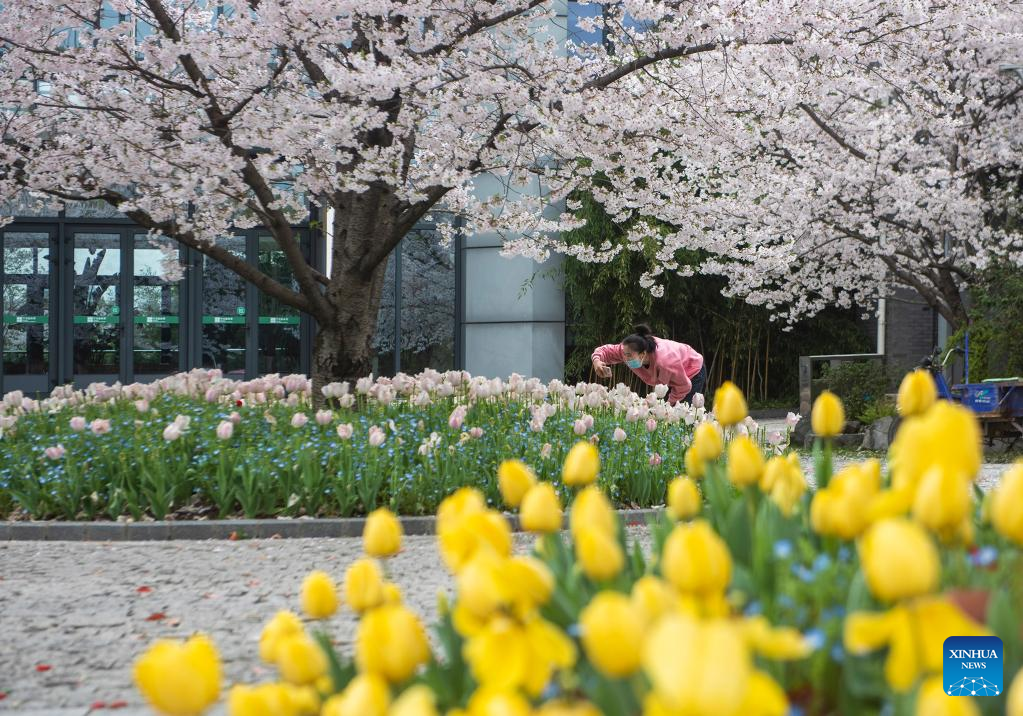 Tourists visit a cherry garden in Guian New Area, southwest China's Guizhou Province, March 21, 2023. A cherry garden of the Guian New Area, covering an area of 24,000 mu (about 1,600 hectares), has attracted a large flow of tourists during the blooming season of cherry blossoms. (Xinhua/Yang Wenbin)