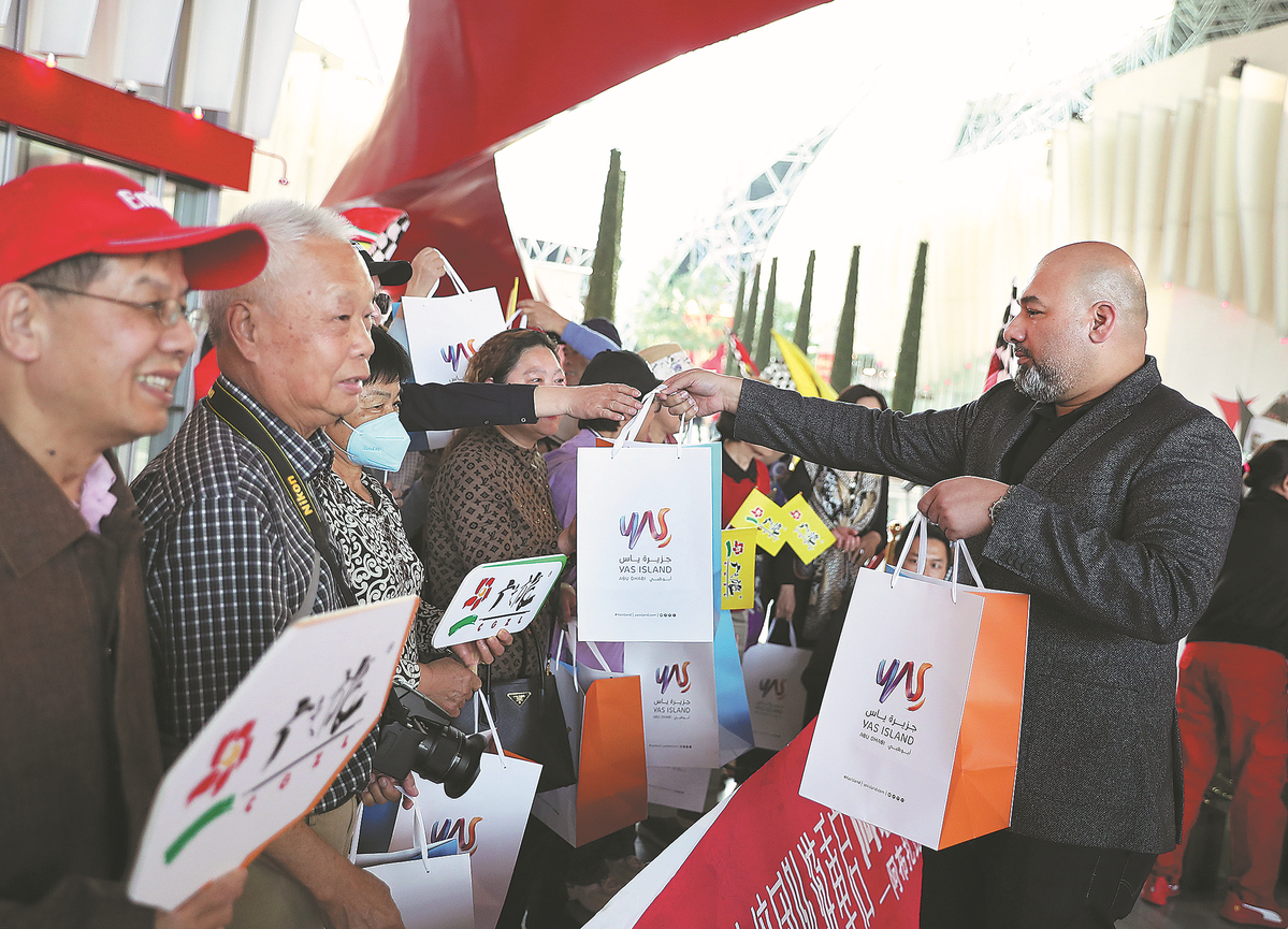 Chinese tourists are welcomed in Abu Dhabi, capital of the United Arab Emirates, last month. [Photo/China News Service]