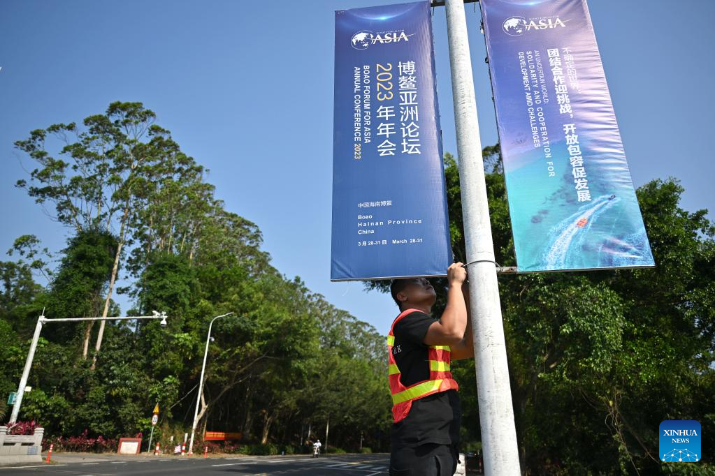 Posters for the Boao Forum for Asia (BFA) Annual Conference 2023 are seen in Boao, south China's Hainan Province, March 25, 2023. The BFA will hold its annual conference from March 28 to 31 in Boao, a coastal town in China's island province of Hainan. (Xinhua/Guo Cheng)