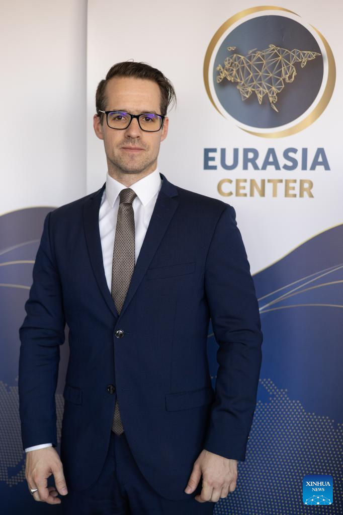 Levente Horvath, director of the Eurasia Center of the John von Neumann University, poses for a photo in Budapest, Hungary on March 16, 2023. (Photo by Attila Volgyi/Xinhua)
