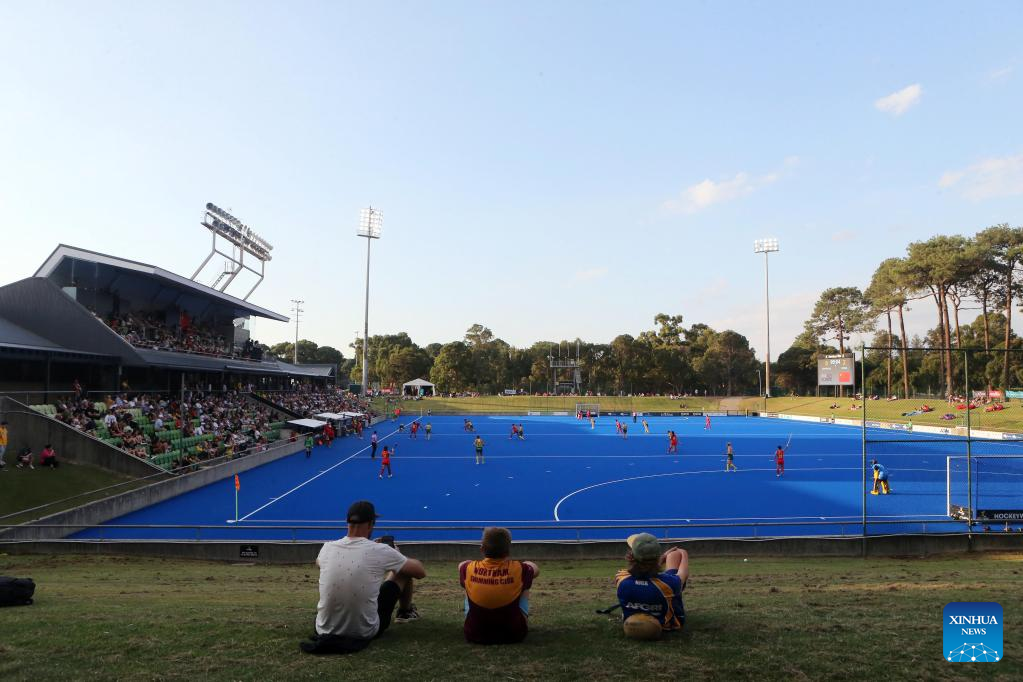 Spectators watch a women's hockey friendly match between China and Australia in Perth, Australia on March 25, 2023. (Photo by Zhou Dan/Xinhua)
