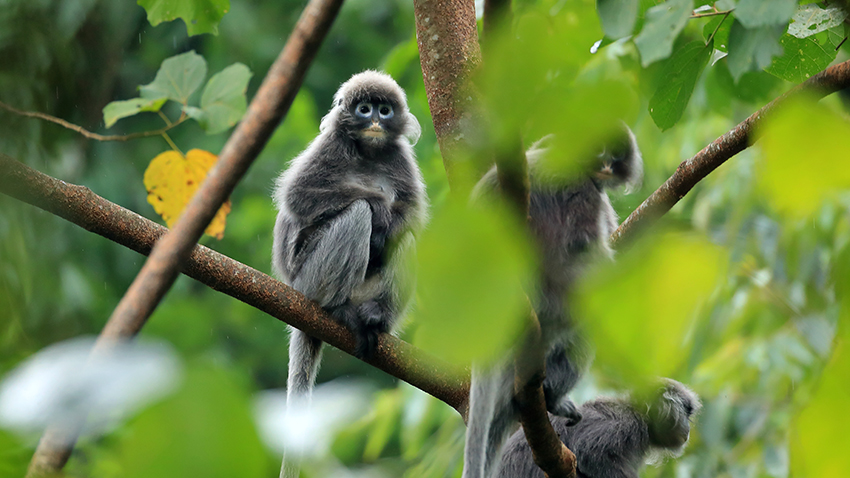 Photo shows several Phayre's leaf monkeys in the lush forest of Mangshi city, Dehong Dai and Jingpo Autonomous Prefecture, southwest China’s Yunnan Province. (Photo/Zheng Shanhe)