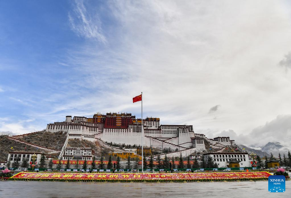 The Potala Palace is pictured on the occasion of the 15th Serfs' Emancipation Day in Lhasa, capital of southwest China's Tibet Autonomous Region, March 28, 2023. The 15th Serfs' Emancipation Day falls on Tuesday. (Xinhua/Jigme Dorje)