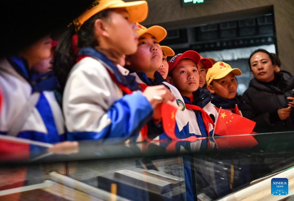Primary school students visit a memorial hall marking the emancipation of more than one million serfs on the occasion of the 15th Serfs' Emancipation Day in Lhasa, capital of southwest China's Tibet Autonomous Region, March 28, 2023. The 15th Serfs' Emancipation Day falls on Tuesday. (Xinhua/Jigme Dorje)