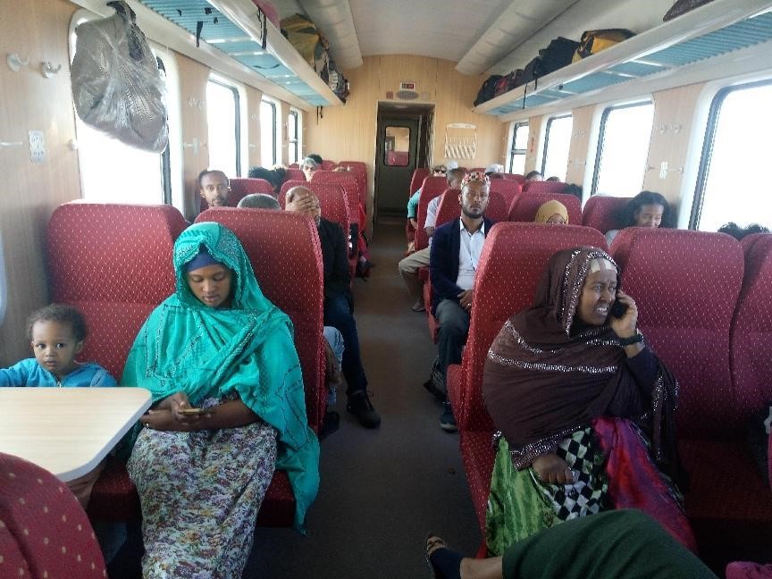 Photo shows passengers on a train running on the Addis Ababa-Djibouti Standard Gauge Railway. (Photo by Huang Peizhao/People's Daily)
